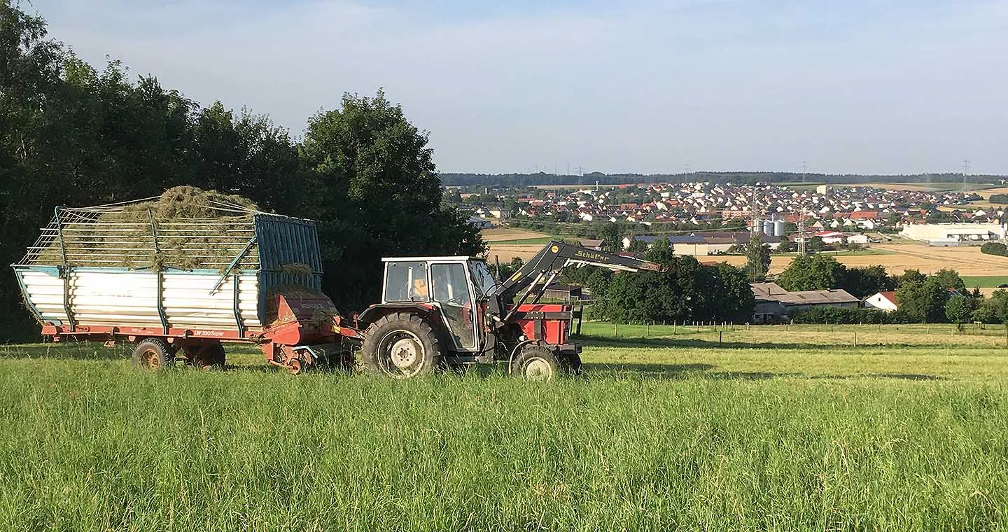 Wir bewirtschaften den Hof in der dritten Generation. 2009 haben wir als erster Betrieb vor Ort auf ökologischen Landbau nach den Bioland-Richtlinien umgestellt.